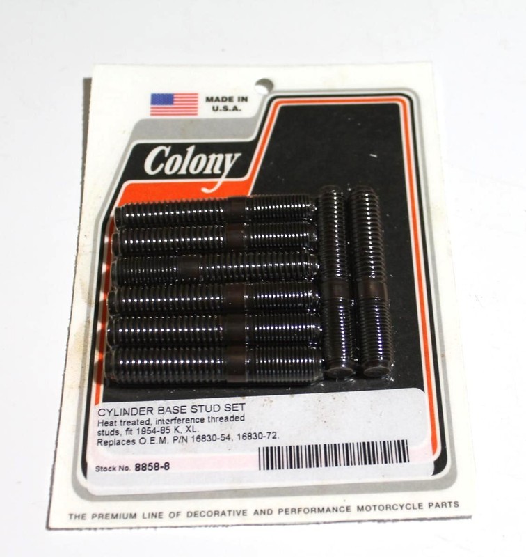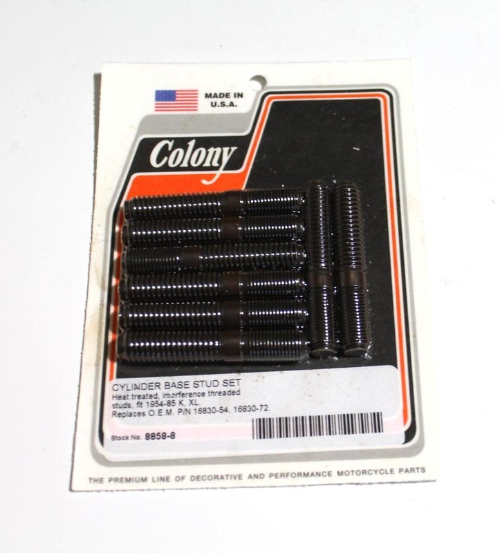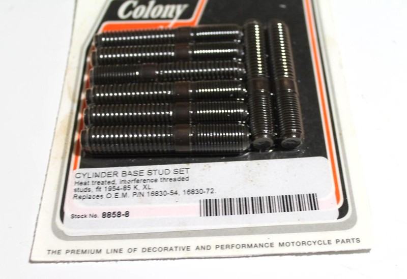 1954-1985 HARLEY-DAVIDSON SPORTSTER K XL MODEL CYLINDER BASE STUD SET 8858-8 HEAT TREATED, INTERFERENCE THREADED. REPLACES OEM PART# 16830-54 AND 16830-72. We are just starting to stock Colony items. Please let us know of any items that you would like us to list for you. Thanks CONEX#1,BOX#167 Please review all pictures to asses the condition of the item. Shipping We ship nearly all orders within 24 hrs and add tracking numbers to eBay as soon as we ship. If you have not received your order by the estimated delivery date, please contact us as soon as possible through eBay messages. Payment We accept paypal. Returns If an incorrect or defective item is received, please contact us as soon as possible through eBay messages so that we can resolve the issue. |